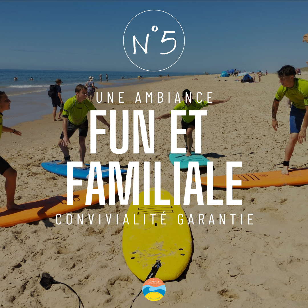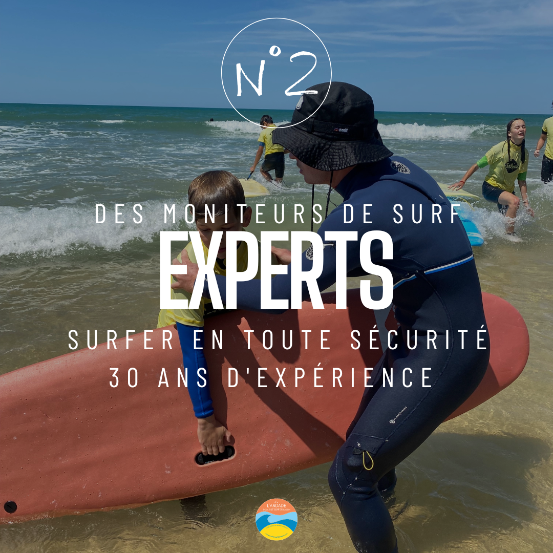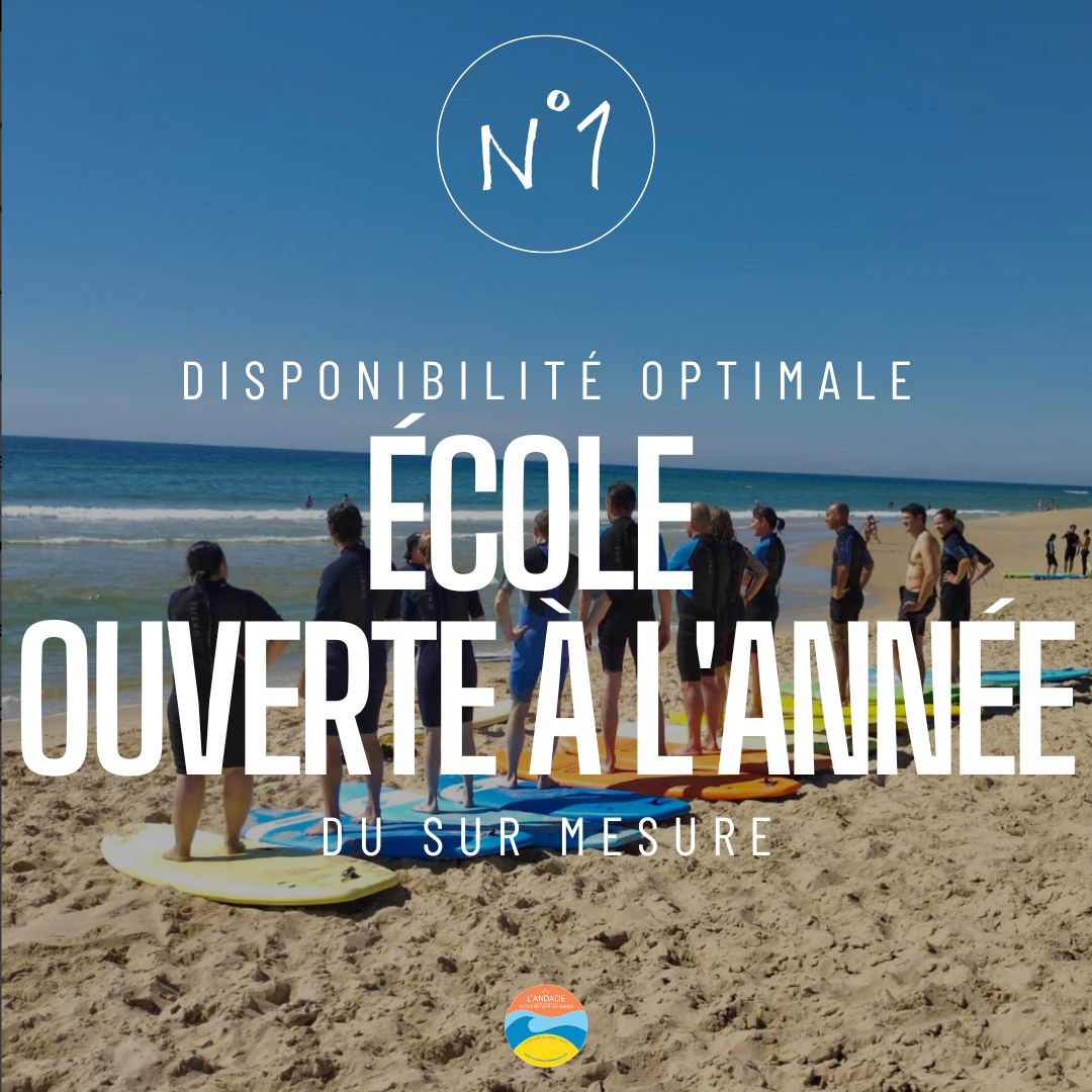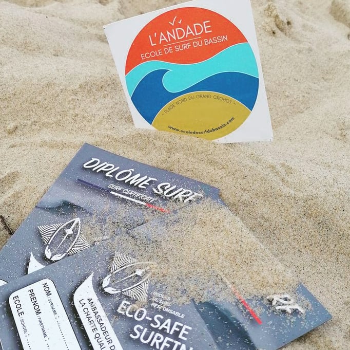 L'Andade (la vague en patois local) est une école de surf familiale mise en place par Romain GOUBET en 2008. Les stagiaires (âgés minimum de 8 ans) sont pris en charge par Romain et son équipe pendant environ 3 heures 30 au départ d'Andernos ou directement sur le Plage Nord du Grand-Crohot et sont initiés et/ou perfectionnés au Surf, mais apprennent aussi à découvrir un environnement et une culture locale ! Sylvie, l’épouse de Romain, est à votre disposition pour vous fournir des détails sur le fonctionnement de l'école, les disponibilités, les horaires...
